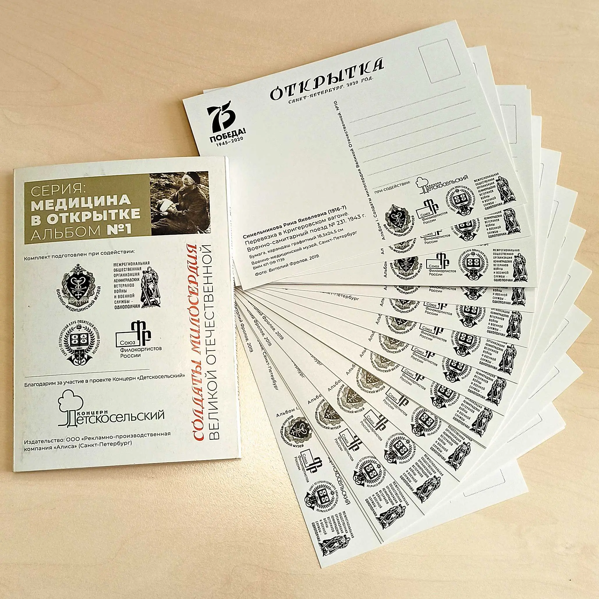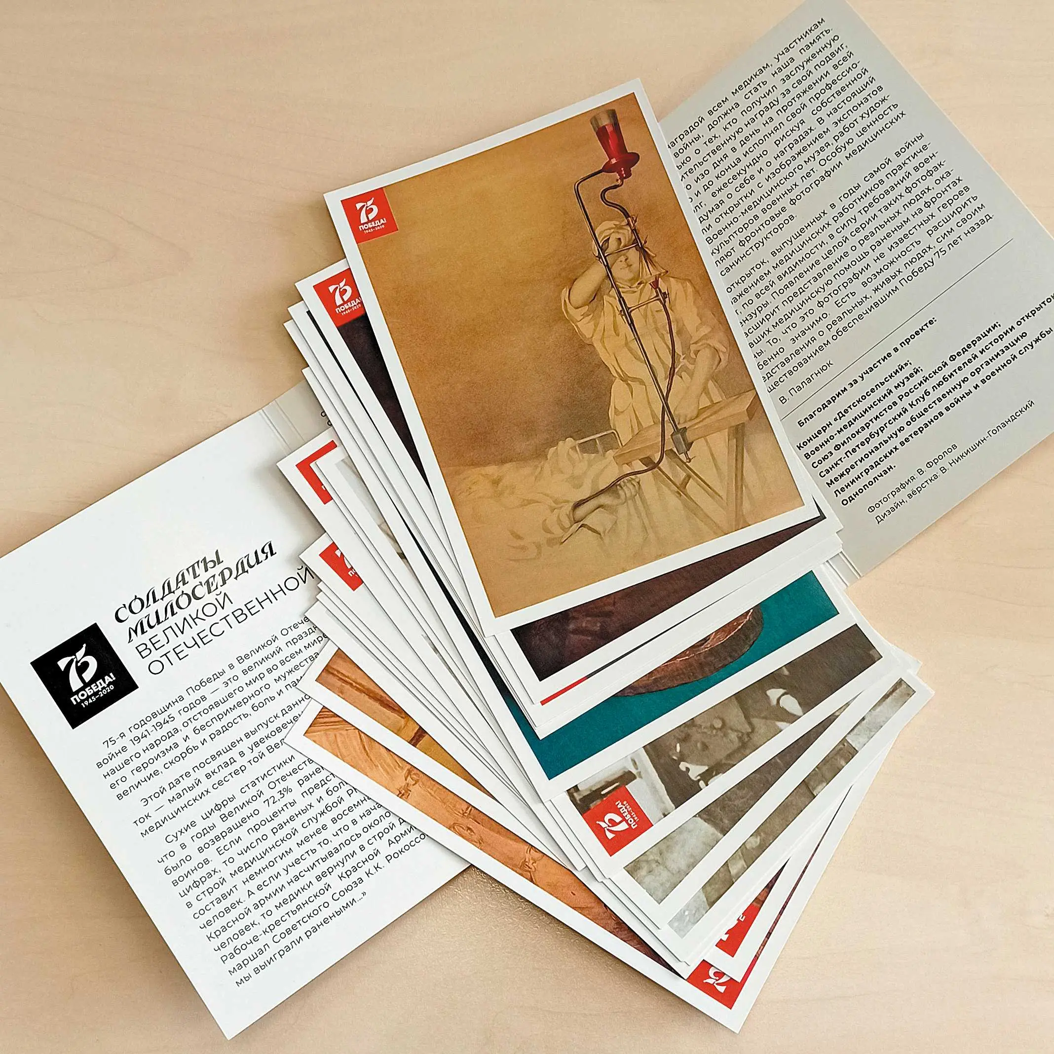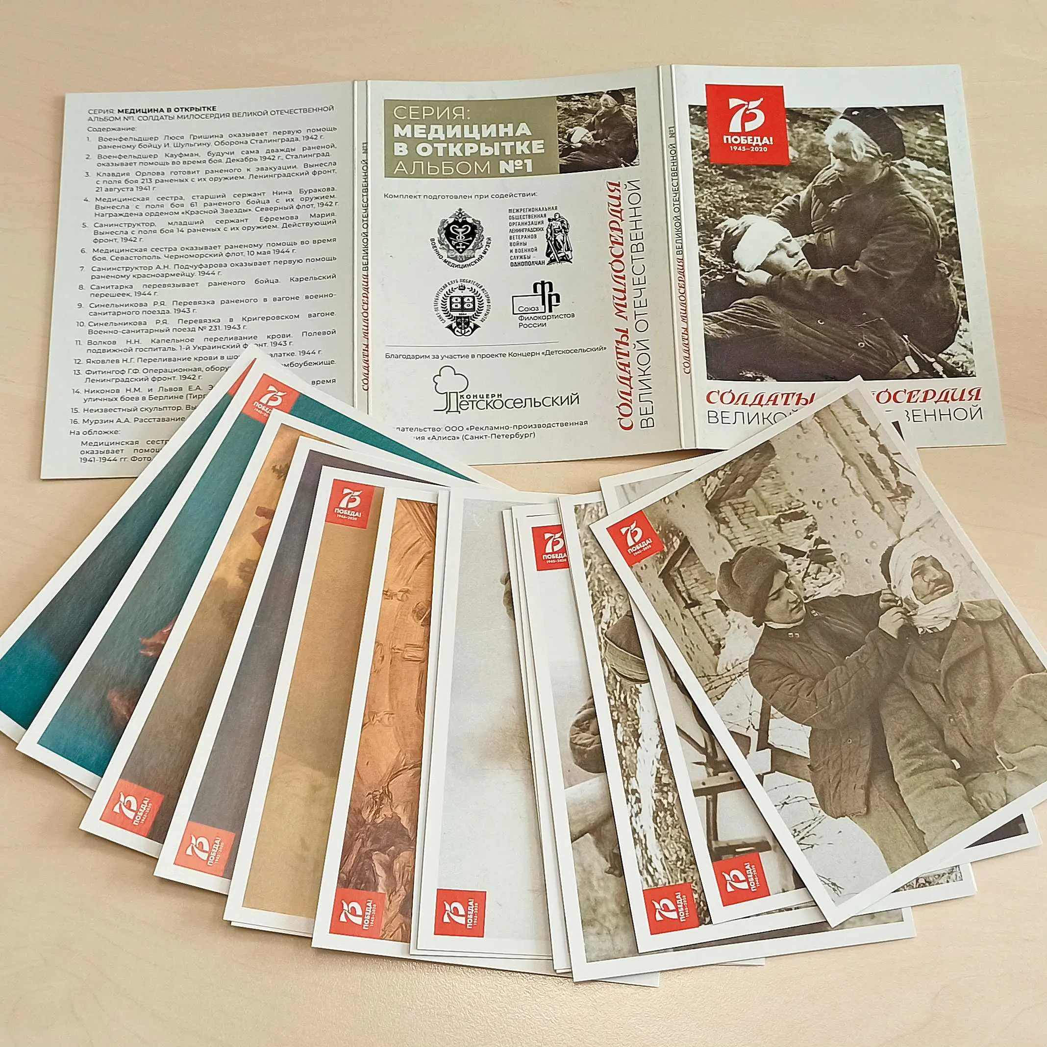 К 75-летию Победы в Великой Отечественной войне выпущен первый комплект в серии «Медицина в открытке» из 16 открыток в обложке.