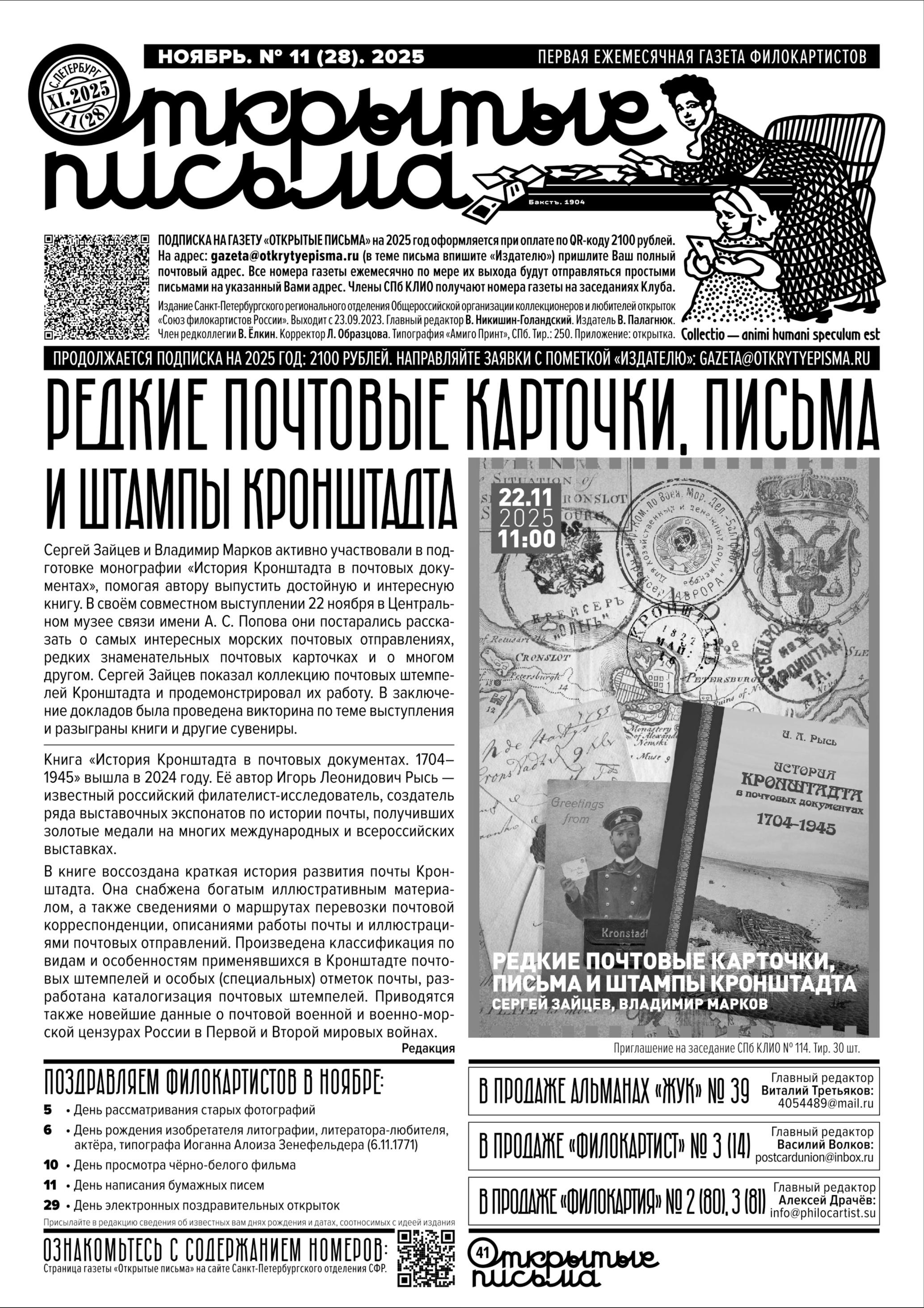 Редакция. Проект СФР СПб «Выдающиеся филокартисты»
